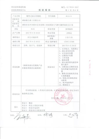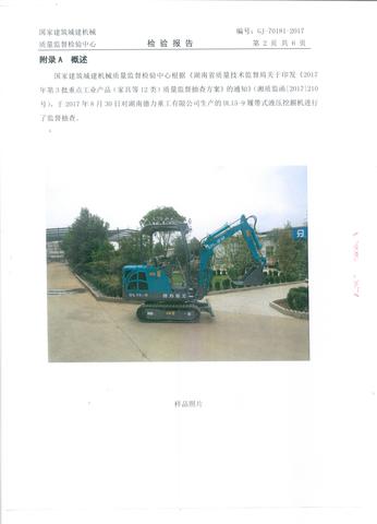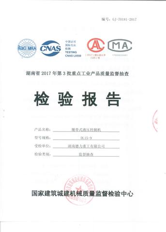 國家建筑城建機械質量監督檢驗中心《根據省質量技術監督局關于印發《2017年第3批重點工業產品(家具等12類)質量監督抽查方案》的通知》(湘質監函[2017]210號),于2017年8月30日對湖南德力重工有限公司生產的DL15-9履帶式液壓挖掘機進行了監督抽查。